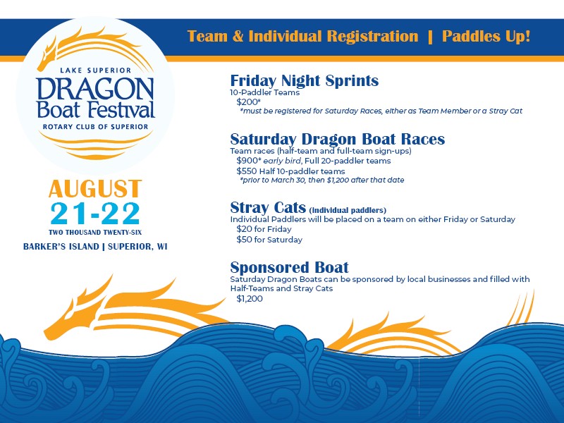 $900 - Lake Superior Full Team Early Bird Fee - For full, 20-paddler, rosters who pay prior to March 30th