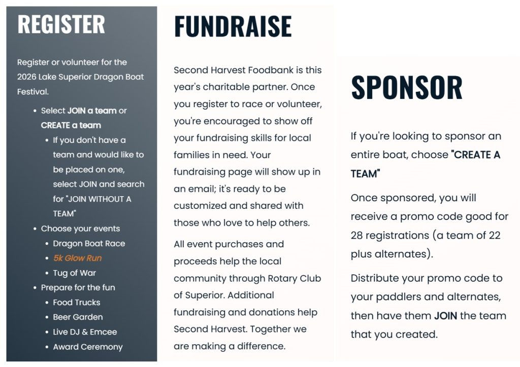 The Lake Superior Dragon Boat Festival is a fun family event brought to the Twin Ports community by the Superior Rotary Club!